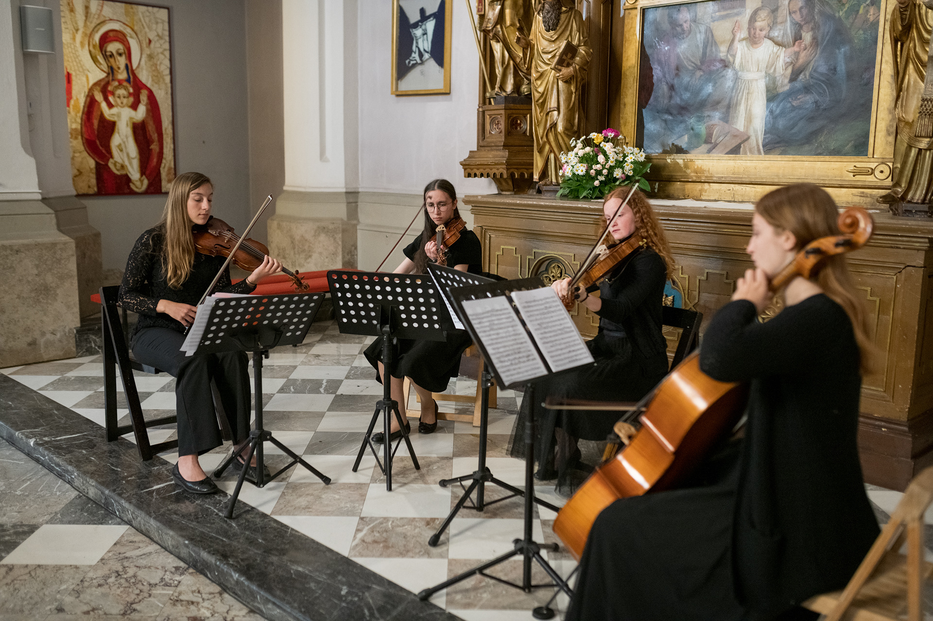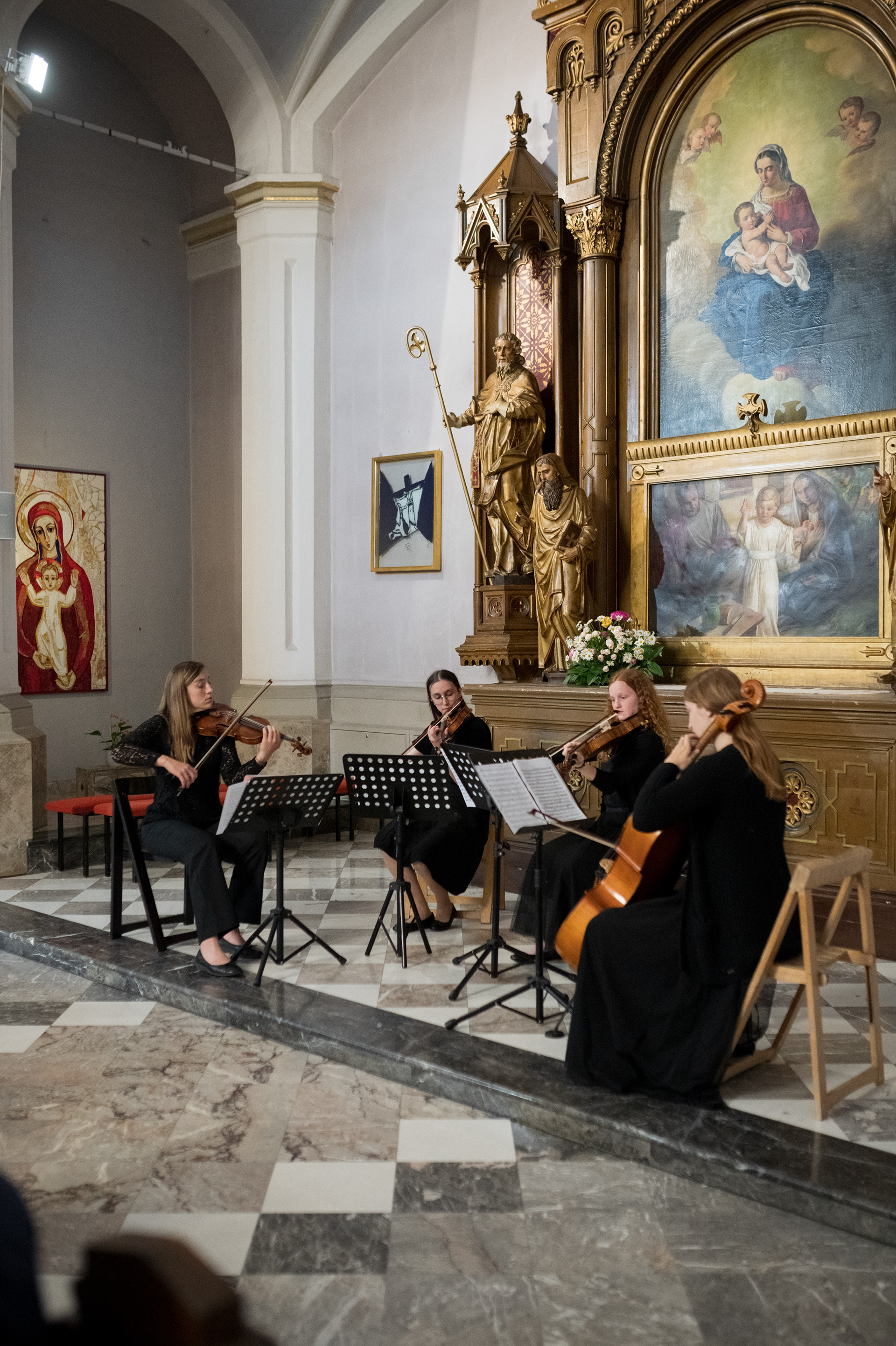 Igranje pri svetih maša predstavlja enega od začetkov naše skupne poti, ko smo se v času skupnega izpopolnjevanja na Konservatoriju za glasbo in balet Ljubljana odločile, da s svojim znanjem in talenti obogatimo nedeljsko bogoslužje.